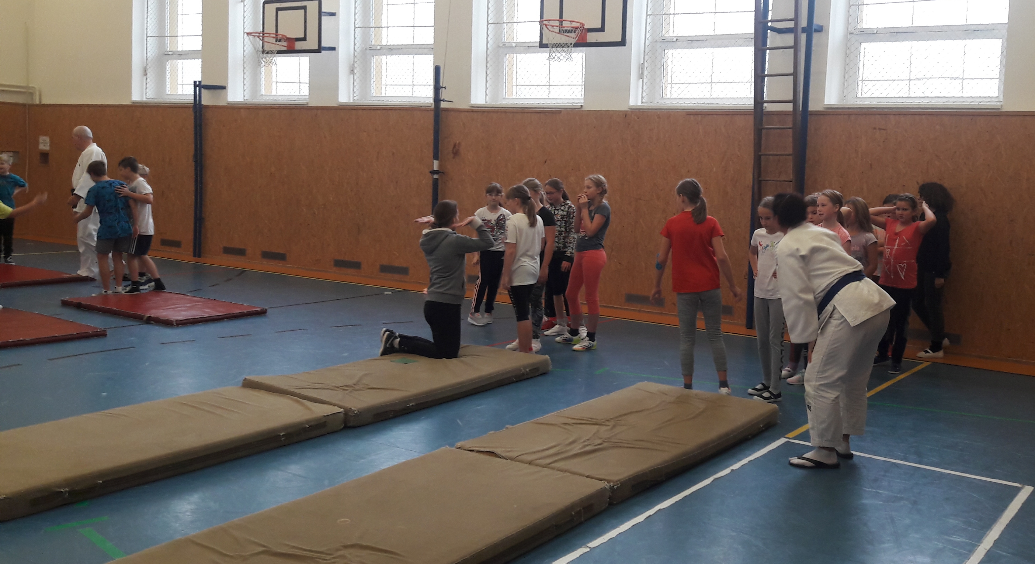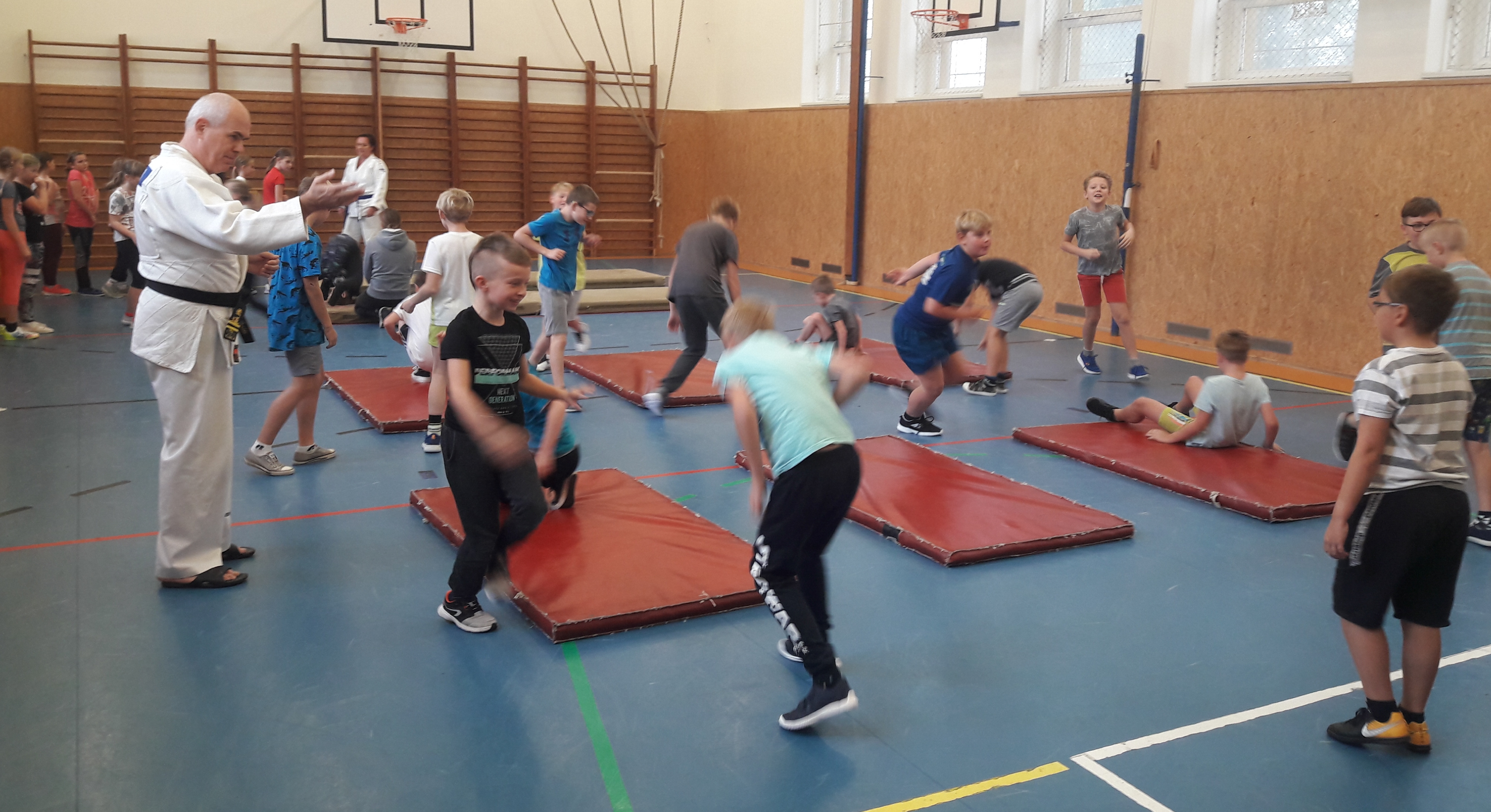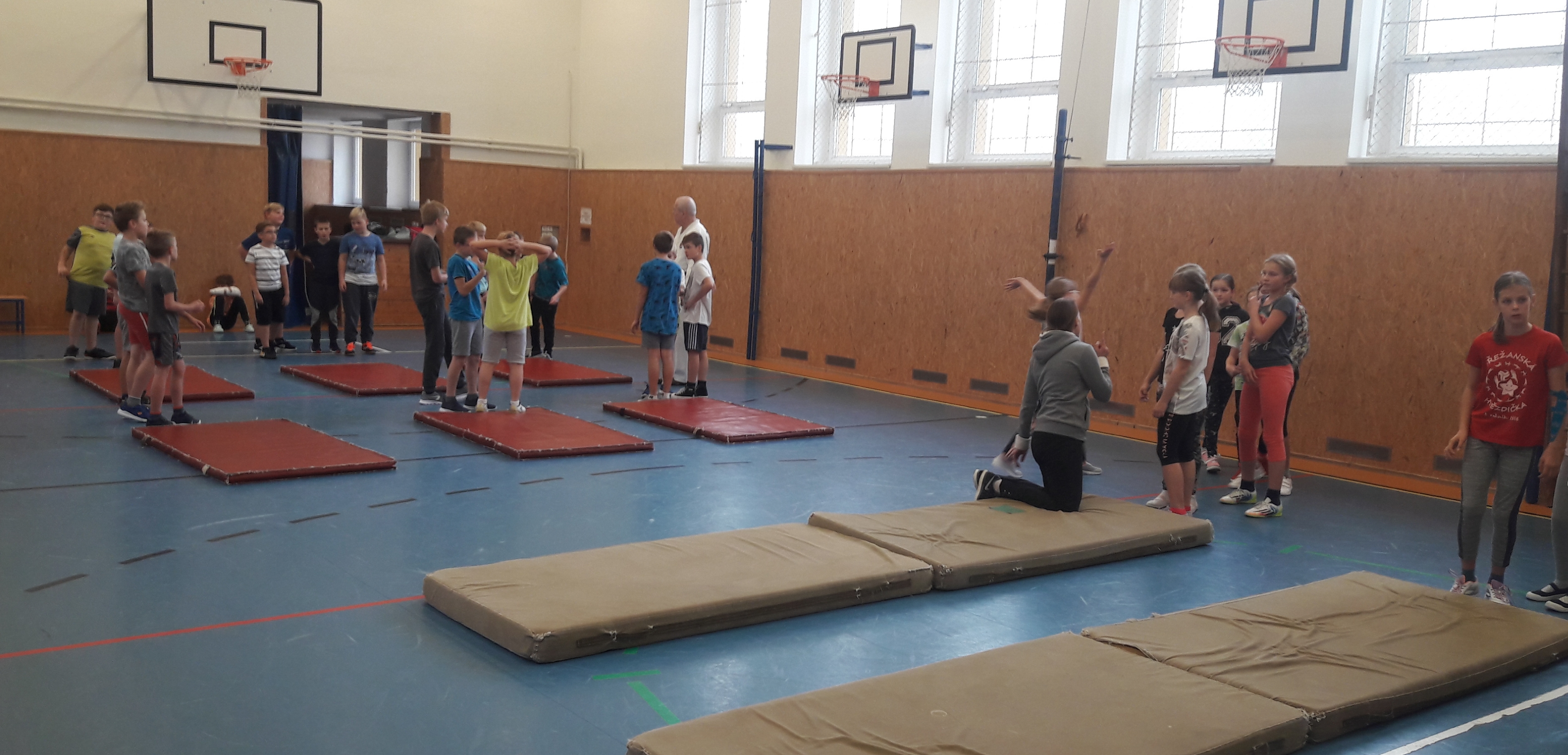 Čtvrťáci a páťáci na ZŠ Pchery dnes zažili první ze tří vyučovacích hodin netradičního tělocviku. Škola se zapojila do projektu Sdružení sportovních svazů České republiky nesoucí název Nebojme se pádů, a tak si žáci mohli vyzkoušet v rámci tělesné výchovy první průpravná cvičení a různé techniky pádů.